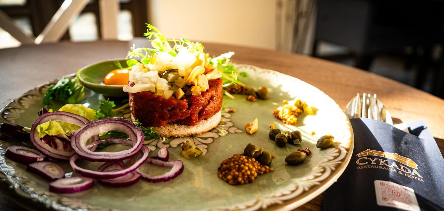 Dbamy o to, aby nasze potrawy były zawsze smaczne, świeże, zdrowe i wykwintnie podane. Menu restauracji łączy to co najlepsze w kulinarnej tradycji kraju i regionu ze smakami nowoczesnej kuchni międzynarodowej.